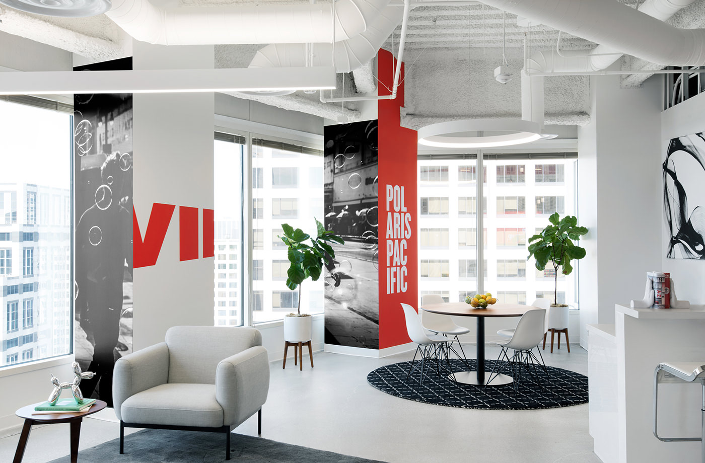 When Polaris Pacific made one of their boldest real estate moves yet—moving into the iconic 777 Figueroa building in downtown LA—Allis was eager to take on their interior design. As chief collaborator in their recent rebrand, it was an honor and a challenge to not only translate the brand into an environmental expression, but to also curate a space ideal for everyday functionality with the flexibility for future growth.