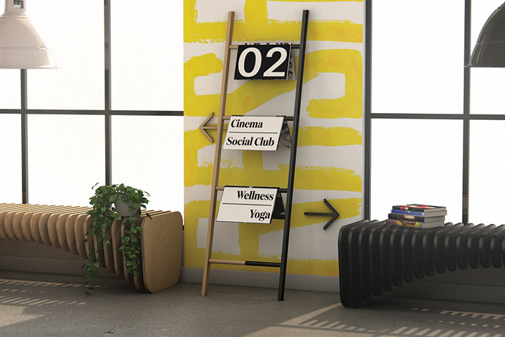To pay homage to the artistic roots of this location and promote a thorough brand experience for guests, unique wayfinding and was designed for each of the 6 floors, allowing for a flexible system built from minimal materials, ensuring that no two floors are crafted exactly alike.